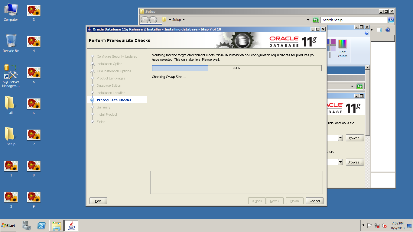 10) سپس بر روی دکمه FInish کلیک کرده تا سیستم آماده نصب اوراکل شود....