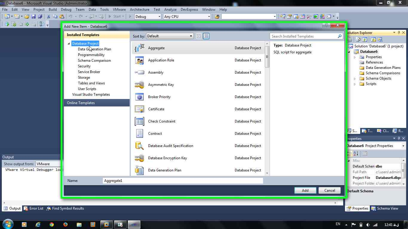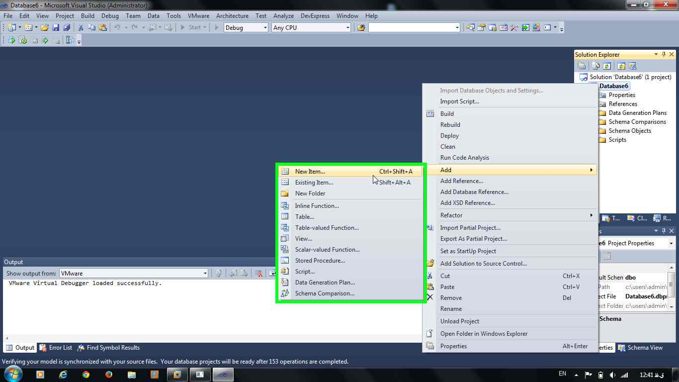 ابتدا روی دیتا بیس راست کلیک کرده سپس Add > New Item.