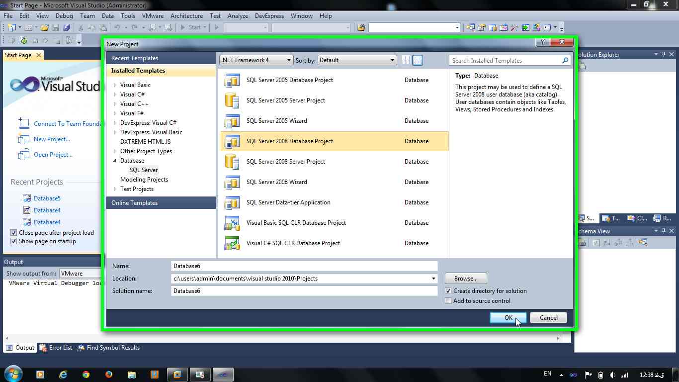 مانند شکل زیر پروژه Sql Server 2008 Database Project را انتخاب نمایید.