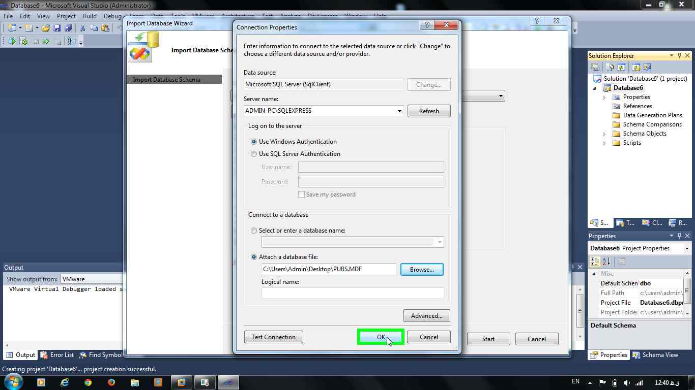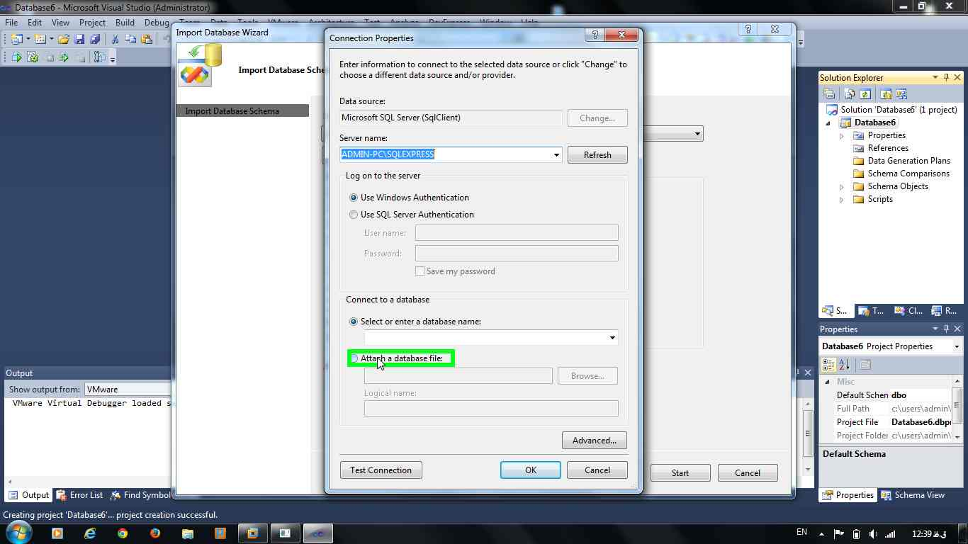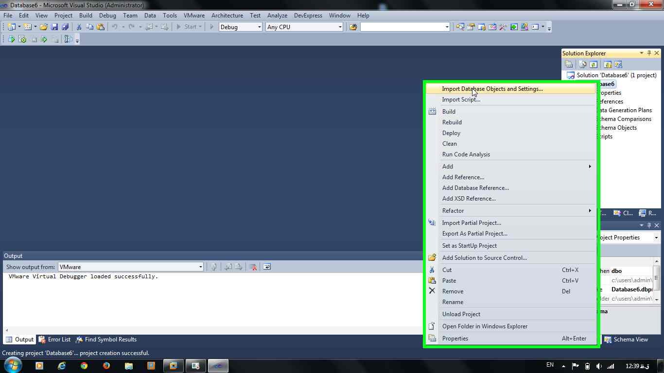 3. پس از انتخاب و ساخت پروژه سکوئل سرور حالا مرحله درج پایگاه داده یا ایمپورت پایگاه داده است. مانند شکل زیر انجام دهید.